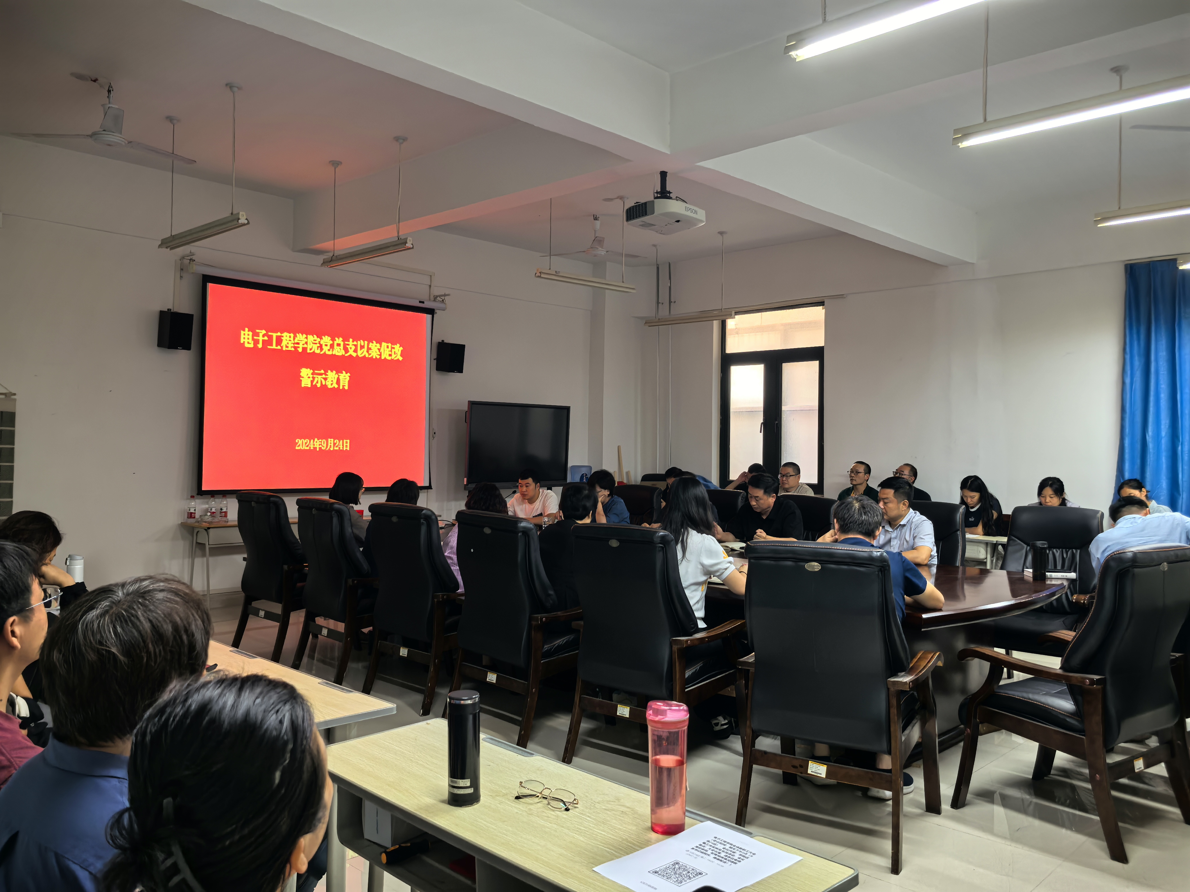 为深入推进党风廉政建设,强化党员干部廉洁自律意识,提高拒腐防变能力,电子工程学院党总支于9月24日在学院会议室组织开展了一场警示教育活动,学院全体党员教师参加了活动。