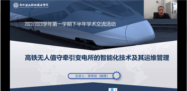 讲座以扎实的理论研究和丰富的现场应用案例视频图片为基础,以京张、黄黄等高铁无人值守变电所的建设与运营为工程实例,向铁道供电专业师生分析展示了当前牵引变电所辅助监控系统技术应用及运行维护、无人化牵引变电所管理等当前高铁牵引供电的前沿课题。