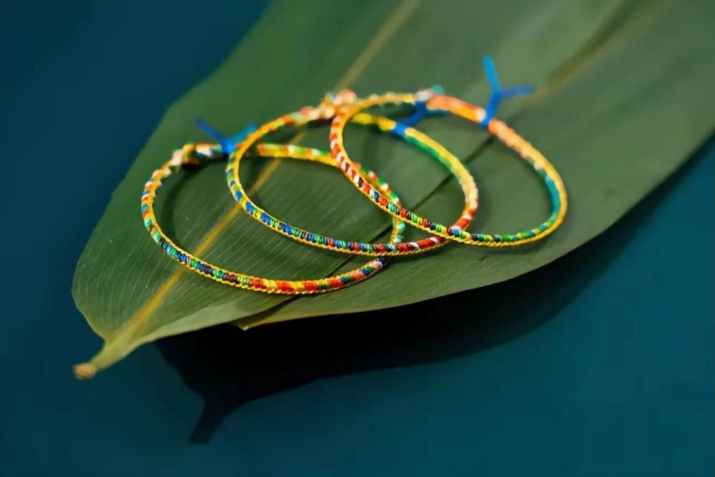 栓五彩绳:端午节这天,人们会在孩子的手腕、脚腕或颈项上系上五彩绳,认为这样可以避邪驱瘟,带来好运。