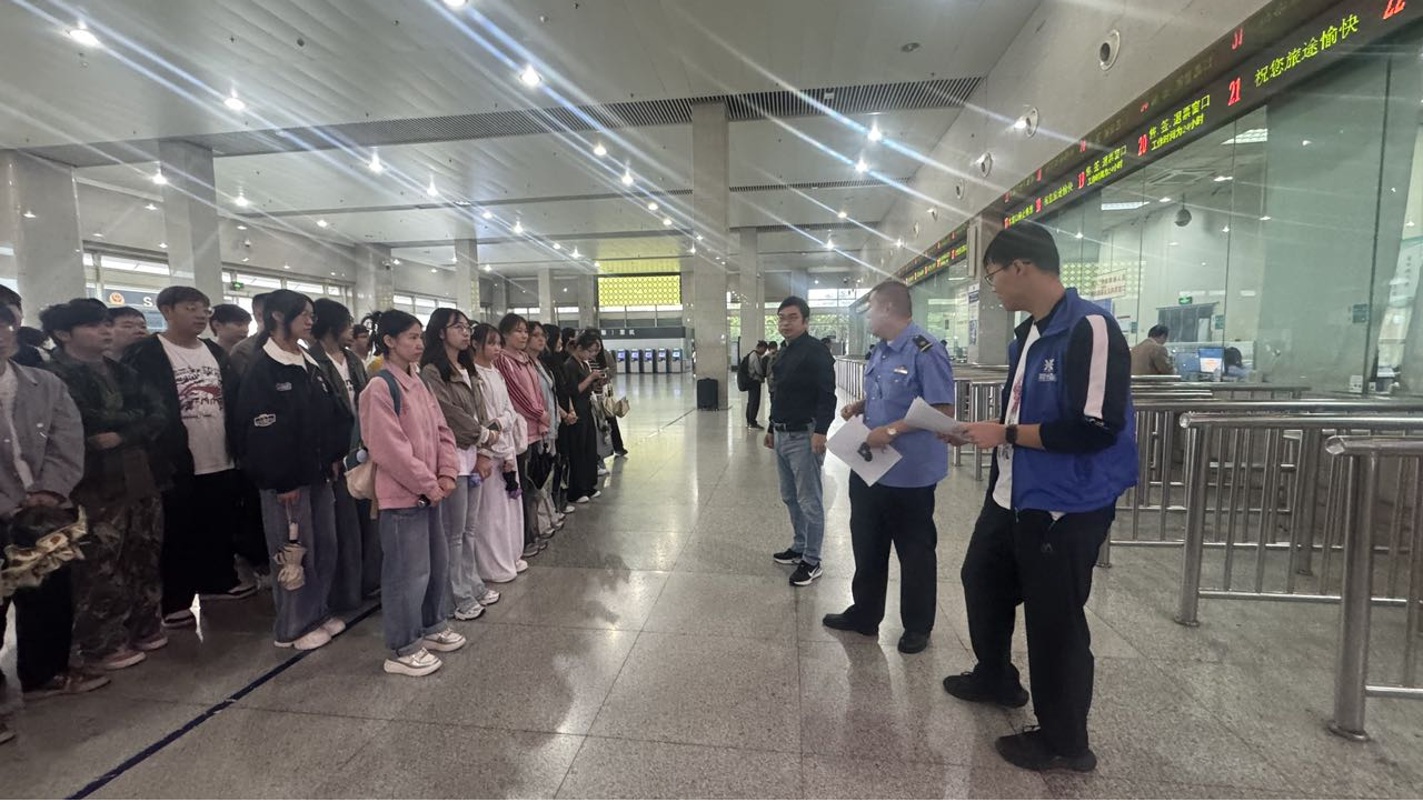 在郑州火车站西进口服务台处,吉鹏霄召集即将进入岗位的学生,进行实习前的安全教育。他首先强调安全问题,无论在岗位值守还是日常出行中,安全都是首要原则,要严格遵守车站规章制度与学院实习要求,保护好自身人身与财产安全,遇到问题第一时间联系指导教师或车站负责人。随后,他对学生的实习态度提出期望,大家要秉持认真负责的态度,尊重车站师傅、虚心听取指导,即使是基础工作也要耐心细致,展现郑铁职院学子的良好风貌。