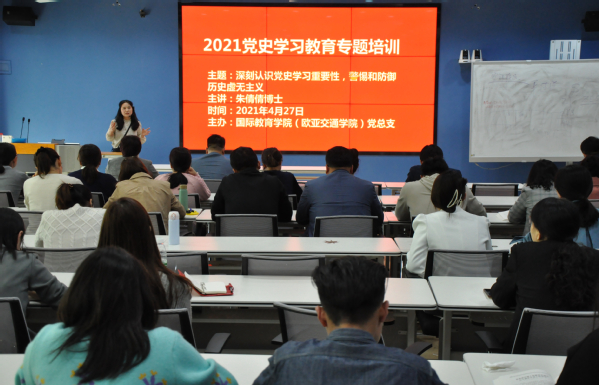 为进一步加强党史学习教育,不断增强党员的党性修养,调动全体党员的工作热情,4月27日下午,国际教育学院(欧亚交通学院)党总支组织全体党员开展党史学习教育专题培训。