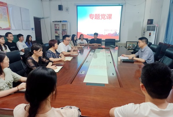 党委书记许琰以《充分发挥思政课“主渠道”作用 打造入脑入心、“有知有味”、特色鲜明的思政课》为题给思想政治理论教学部全体教师讲授党史学习教育专题党课