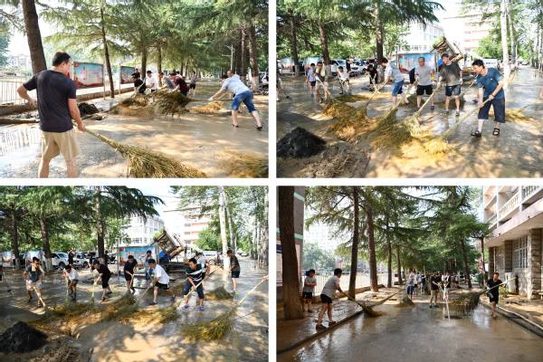 在清理淤泥的同时,后勤服务中心还组织成立卫生应急消杀工作小组,对洪水淹过的道路、宿舍内外、教学楼、食堂、公共厕所、排水管道及垃圾收集点等重点场所进行无死角喷洒消毒,防止发生灾后次生灾害。