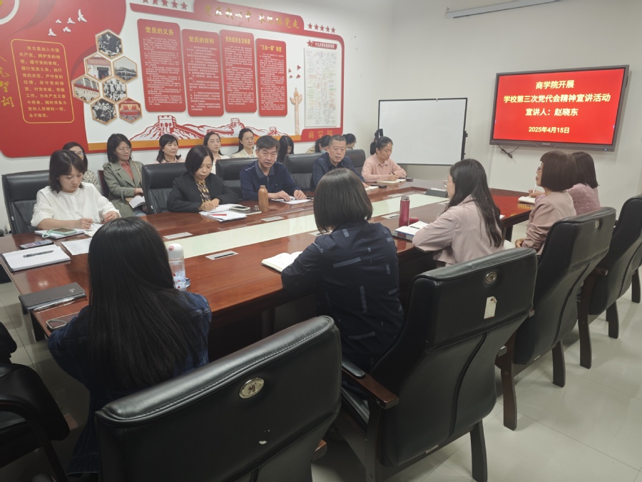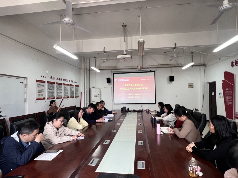 按照学校党委关于开展第三次党代会精神宣讲活动的整体安排,4月15日下午,学校宣讲团成员、党委统战部部长赵晓东先后赴医学技术与工程学院、商学院宣讲学校第三次党代会精神,医学技术与工程学院党总支书记金湘东、商学院党总支书记刘波分别主持宣讲会,学院领导班子成员和全体党员参加会议。