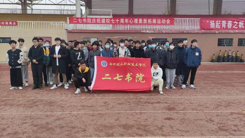 为庆祝建党100周年和建校70周年,二七书院于2021年11月21日下午举办了“从心启航、活力二七”心理素质拓展运动会,活动以团体活动游戏的形式展开,我院部分21级、20级学生参加。