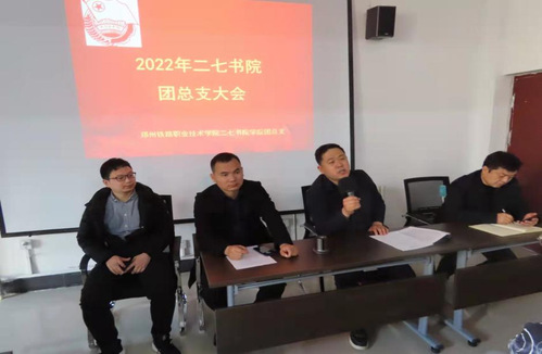 2022年3月8日下午,二七书院团总支召集全体团学干部在二七大讲堂召开新学期首次例会。二七书院党总支书记张家祥、副院长钟大成参加了会议,会议由团总支书记吉海洋主持。