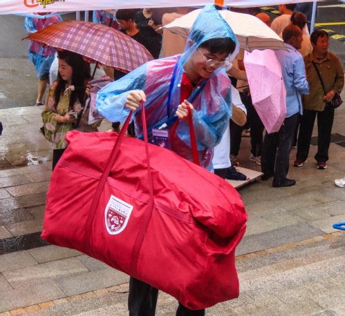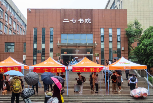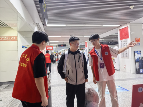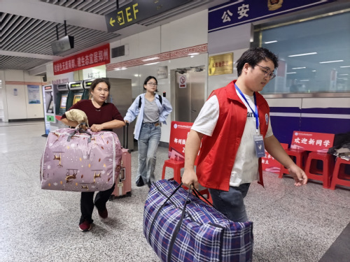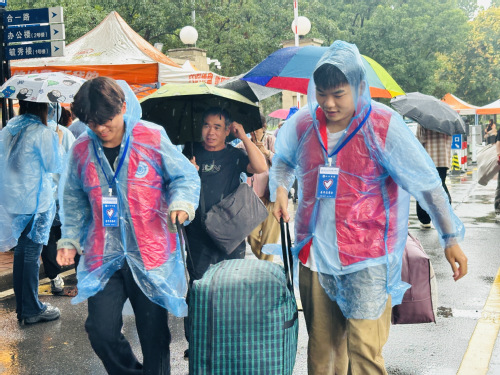 从天色微明到暮色四合,书院育人导师、朋辈导师和志愿者坚守迎新一线。育人导师、朋辈导师耐心解答新生与家长的咨询,用专业与温暖化解最初的陌生与迷茫。志愿者身披雨衣、穿着红马甲,为新生指引路线、搬运行李,即使衣衫湿透,热情不减。
