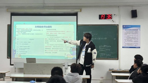 会上,主要向大一新生强调了宿舍安全和卫生的重要性,详细讲解了内务整理标准,并号召同学们要加强内务清洁管理,保持宿舍环境卫生,养成良好生活习惯。同时还为同学们播放了宿舍内务整理标准的视频,通过更为直观的方式向同学们介绍实用的内务整理技巧和方法。最后特别提醒同学们,不要在宿舍存放易燃易爆物品,不使用大功率电器,不私接电路,不使用明火,电线不上床,时刻防范于火灾于未然。
