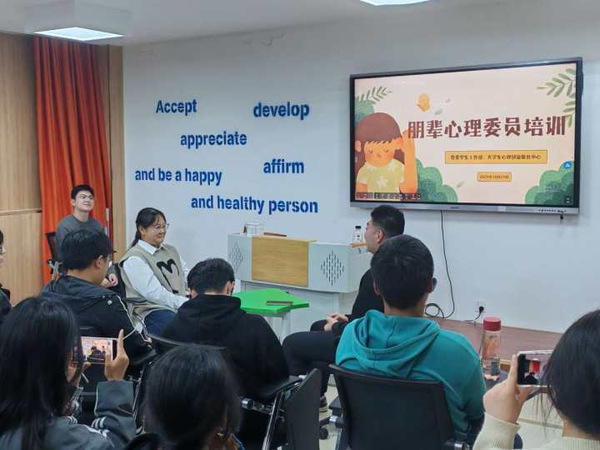 本次培训活动包括基础心理知识、沟通技巧、情绪调节方法和常见心理问题识别等内容,通过专题讲座、案例分享、互动体验等形式展开,帮助朋辈心理委员提升心理服务的实操能力,增强对心理问题的敏感性与干预技巧。从而着力打造一支有温度、有专业素养的学生心理支持队伍,帮助同学们更好应对心理挑战,为推动学校园心理健康教育工作做出贡献。