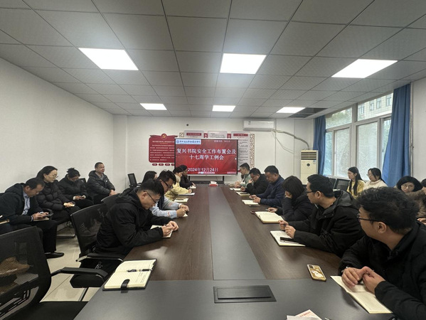 为切实做好期末及假期工作,维护校园安全稳定,进一步提升学生工作管理水平,2024年12月24日,复兴书院于C111召开安全工作布置会及十七周工作例会。本次会议由复兴书院党总支副书记赵亮主持,书院各领导及全体学工人员参与会议。