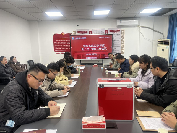 2025年1月3日,复兴书院在C111会议室召开2024年度领导班子民主测评工作会议,书院全体教职工参加。
