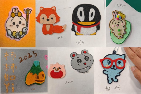 活动历时一个半小时,共吸引30余名同学参加,书院首先向同学们讲解了不织布特性与基础技法,并发放彩色不织布、剪刀、胶棒等工具。不织布看似简单,但要兼顾造型与细节非常需要耐心!同学们自由组队后迅速投入创作,通过设计、裁剪、拼接、填充棉花等工艺,让平凡的布料焕发新生。有同学将粉色不织布卷成樱花盆裁,绿叶点缀间春意盎然;有人缝制出憨态可掬的小兔子挂件,绒毛质感栩栩如生。
