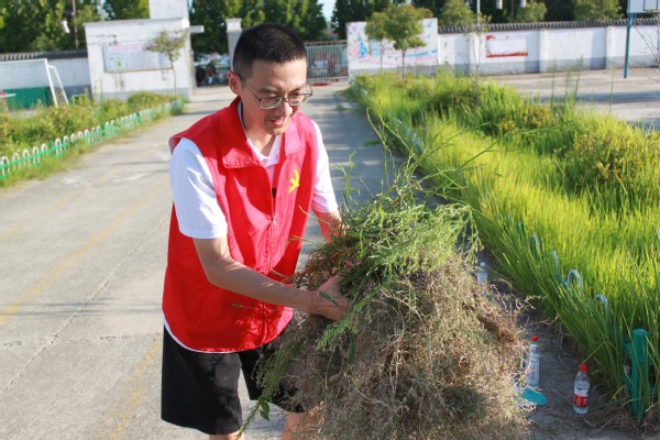 团队志愿者们在驻村书记、学校教师带领下,共同开展义务劳动,集中清理校园杂草、清扫公共区域,为改善校园环境贡献微薄力量。