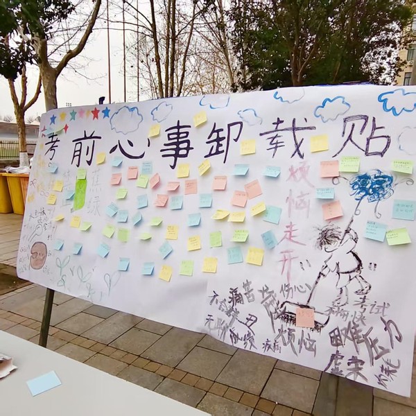 此次活动用轻松有趣的方式,让同学们把考前的紧张、担忧“卸载”在展板上,以更平和的心态迎接考试。参与活动的同学表示,把心事写下来的瞬间,心里的焦虑仿佛也减轻了不少,接下来会带着这份美好期许,从容走进考场。
