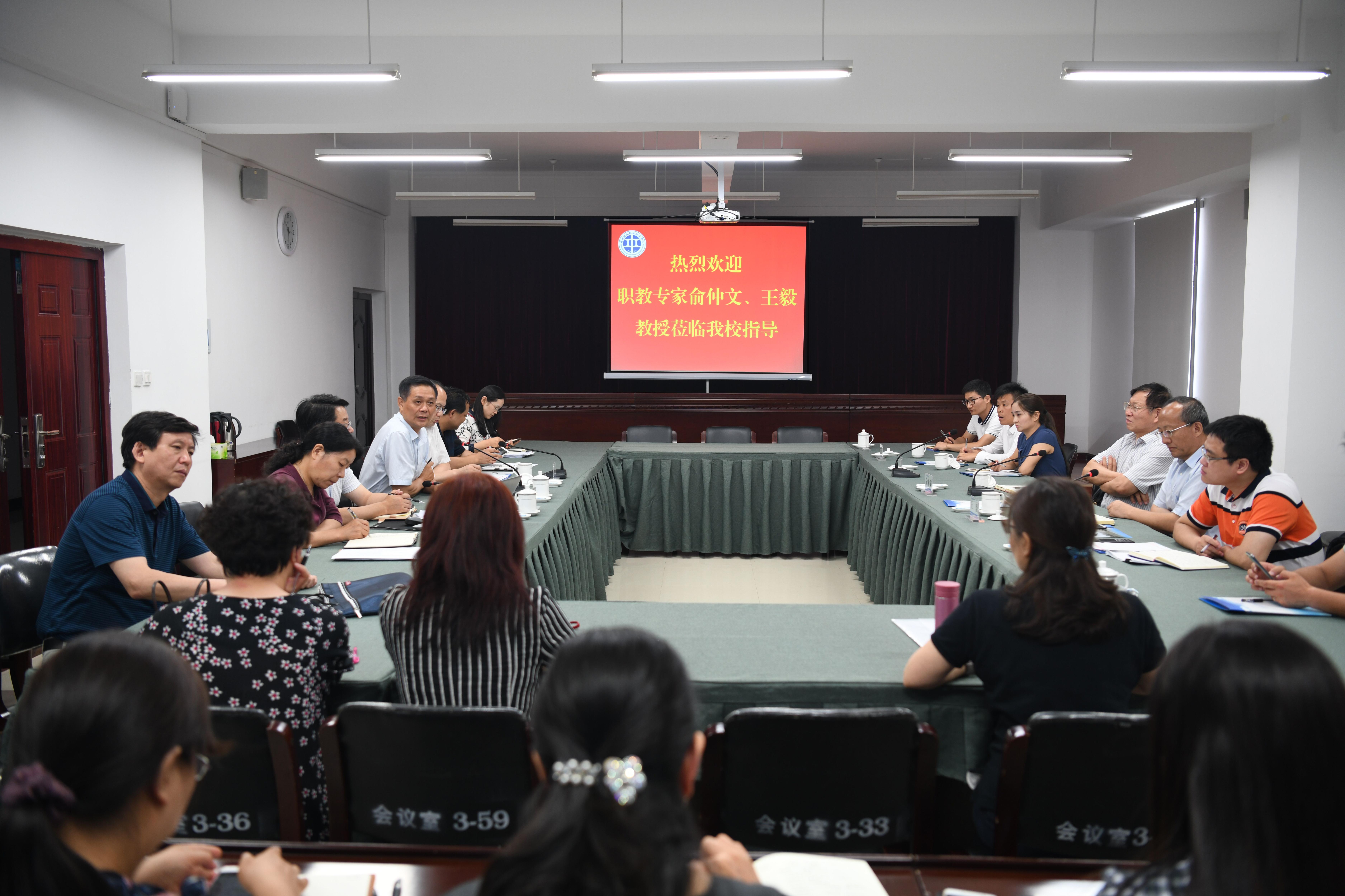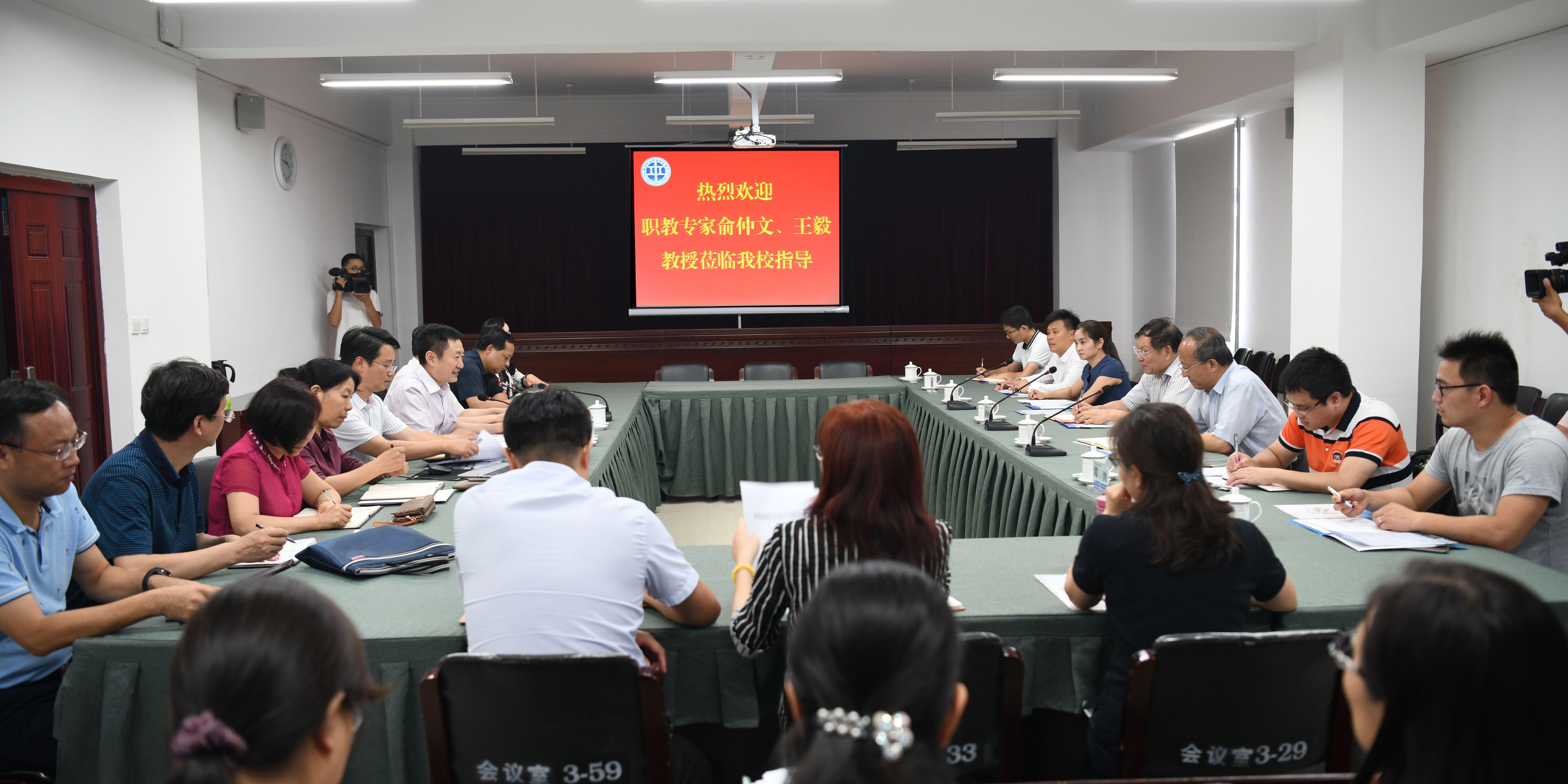 6月20日,中国职业技术教育学会副会长俞仲文、全国职业院校教学工作诊断与改进专家委员会副主任委员王毅莅临我校交流指导“优质校”建设工作,同行的还有国泰安职业教育与产业发展研究院的相关人员。党委书记苏东民、校长孔凡士,副校长董黎生、倪居,“优质校”建设项目组全体负责人等近50人参加了交流座谈会。座谈会由副校长倪居主持。