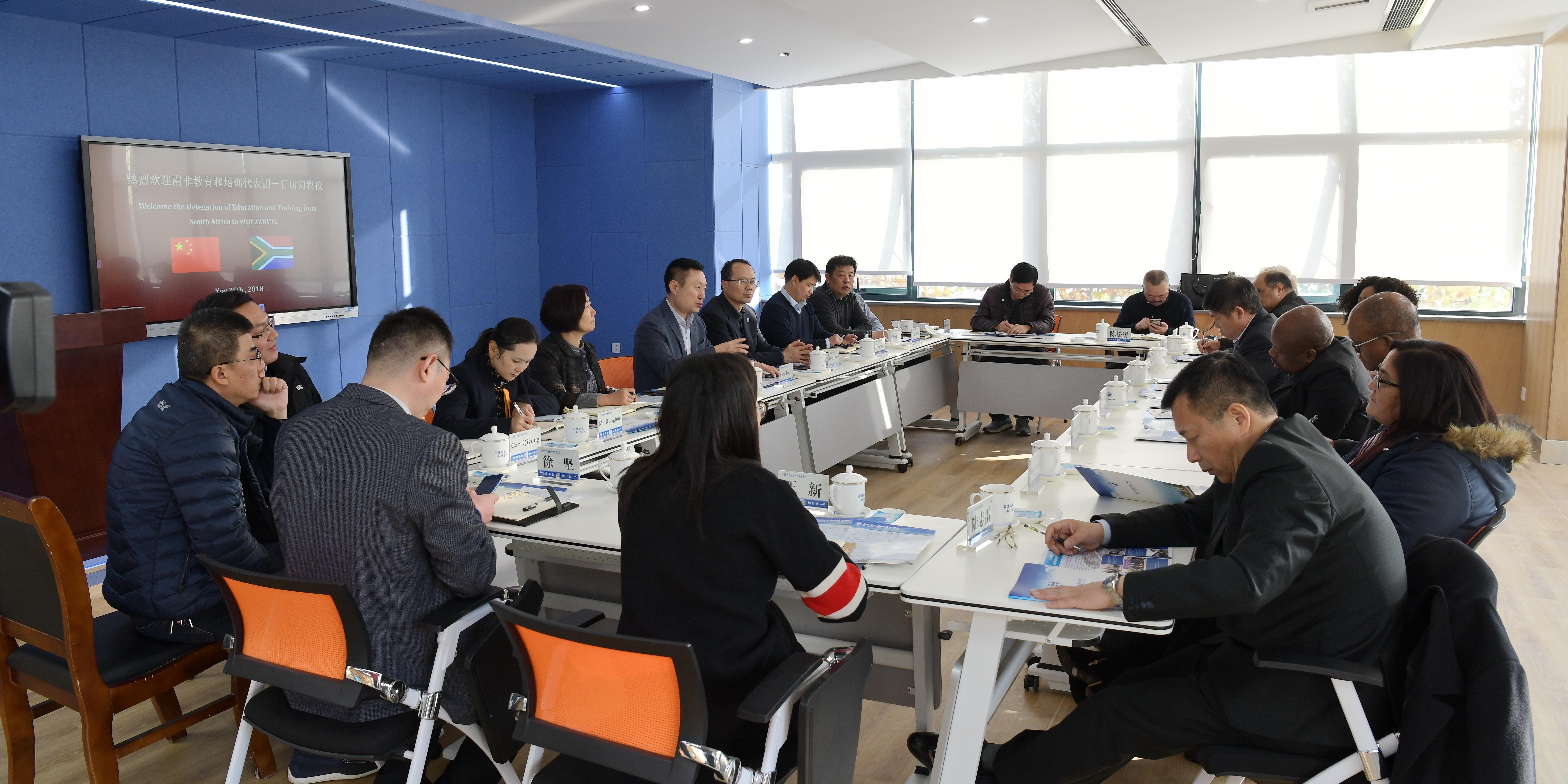 11月26日,南非高等教育和培训部建筑业培训署署长罗伯特·赛米亚、南非诺斯林克大学校长列昂·比奇一行8人在河南省教育厅国际处处长徐恒振的陪同下访问我校。校长孔凡士、副校长董黎生和相关部门负责人会见了客人。双方就留学生培养事宜进行了深入坦诚的交流。