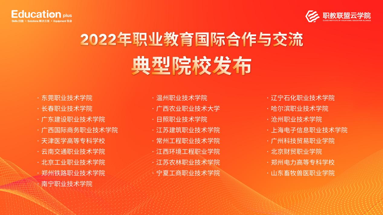 2022Education Plus国际职业教育大会公布了2022年职业教育国际合作与交流典型院校,我校凭借在国际交流与合作方面取得的工作成效成功入选。