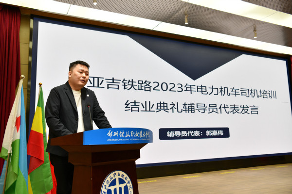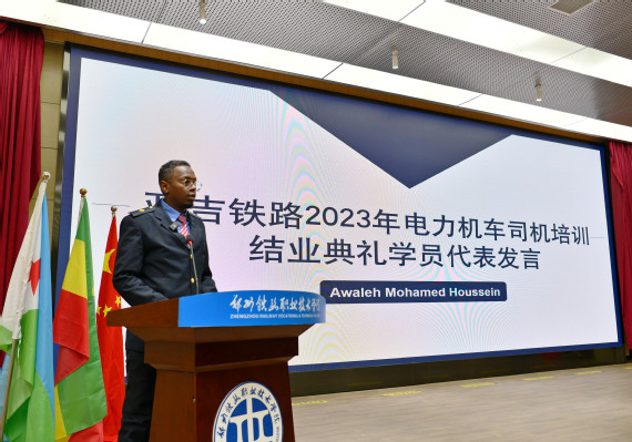 学员代表Awaleh Mohamed Houssein在发言中说,在东非,成为一名亚吉铁路火车司机是一份莫大的荣誉,亚吉铁路不仅仅连接着埃塞俄比亚和吉布提,也拉近了中非之间的友谊。感谢学校和郑州机务段,让大家学习到了更多、更先进的知识,为以后的挑战做好充分的准备。