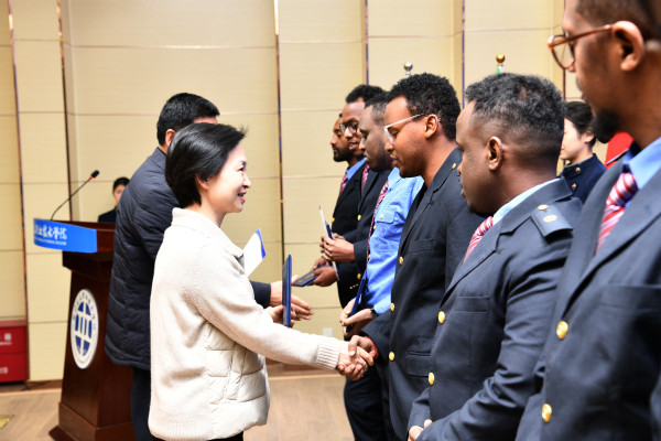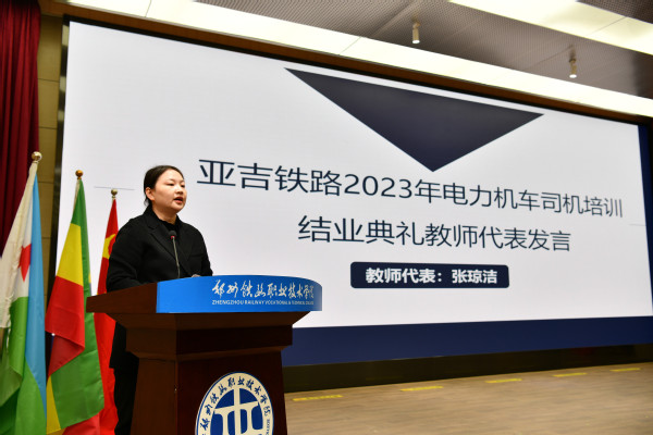 教师代表张琼洁在发言中表示,学员是“一带一路”发展的中坚力量,在亚吉铁路运营中发挥着重要的作用。希望学员们能够充分利用所学知识和技能,发掘自己无限的潜能,为自己国家的铁路事业发展、为“一带一路”高质量建设贡献力量。