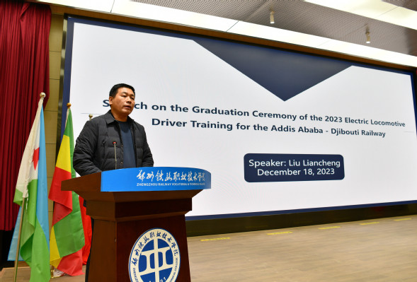 中国铁路郑州局集团有限公司郑州机务段副段长刘连成表示,“和合共生、美美与共”是“一带一路”倡议的核心理念,也是中国铁路郑州局集团有限公司参与亚吉铁路电力机车司机培训的指导思想。近年来,中国铁路郑州局积极服务“一带一路”建设,着力打造“中欧班列(郑州)”品牌,业务范围覆盖40多个国家140多个城市,境内外合作伙伴超6000家。在本次培训期间,集团领导高度重视,郑州机务段、郑州车站、郑州生活段、商丘车站、商丘公寓等单位专题研究外籍学员乘务实习方案,最终圆满完成现场实习教学等任务。希望各位学员回国后早日成长为亚吉铁路上的排头兵,为区域经济社会发展作出杰出贡献。