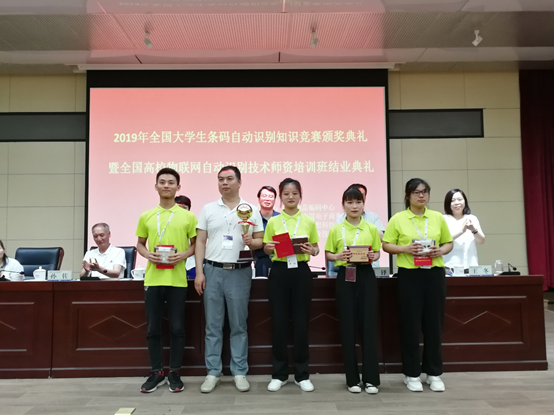 中国物品编码中心成员服务部主任黄泽霞、我校副校长倪居分别致辞,鼓励选手“立志创造,开拓创新,积极进取,成长为专门人才,为实现中华民族伟大复兴的中国梦贡献自己的才智!”并希望培训班教师在讲台上传播“创新”的种子,为科技强国、教育强国筑牢基石。 本届竞赛于今年3月启动,竞赛分为个人赛和团体赛两部分,全国共有250多所高校的1.5万名大学生参赛。 最终,我校团体赛获大赛高职高专组金奖,6位同学获个人赛一等奖、18位同学获二等奖,陆光耀、谢玉军老师分获“最佳辅导教师”和“优秀辅导教师”荣誉称号,同时我校被授予“2019年度高校条码人才培养示范基地”。