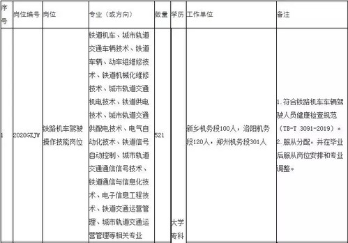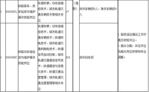 根据企业发展对人才的实际需求,中国铁路郑州局集团有限公司拟招聘2020年全日制普通高等院校大专(高职)学历毕业生,具体事宜公告如下: 一、招聘计划 本次招聘岗位均为铁路运输生产一线操作技能岗位,具体招聘专业、岗位要求详见附件。 二、招聘条件 1.2020年毕业,列入国家招生计划、具备派遣资格的全日制普通高等院校大专(高职)学历毕业生。 2.遵纪守法,品行端正,热爱铁路事业。 3.身心健康,无色盲色弱,符合铁路行业的岗位要求。 4.专业对口,成绩优良,符合招聘岗位要求的学历、专业等条件;所学专业为铁路方向或所学课程中包含铁路专业课程。 5.服从单位对工作岗位的安排及调整。 三、招聘程序 (一)网络报名。符合应聘条件的人员,请于2019年12月31日前,登录“中国铁路郑州局集团有限公司人才招聘网”(http://rczp.zztlj.com),按照网站首页“中国铁路郑州局集团有限公司2020年毕业生招聘报名须知”的要求进行网络报名。每人限报一个岗位。所有报名信息须由应聘人员本人如实填写,如发现弄虚作假,取消应聘资格。 只接受专业(或方向)、学历、毕业时间符合要求的毕业生报名,不符合者请勿报名。 (二)审核筛选。根据岗位需求和网络报名情况,我单位将分期、分批审核、筛选应聘人员的有关资料,择优确定面试入围人选,具体时间、地点以短信或电话方式通知本人。未进入面试考核环节的应聘人员恕不通知。 (三)面试考核。应聘人员按照面试通知的要求,在指定时间、地点参加面试,并现场递交以下资料: 1.个人登录“中国铁路郑州局集团有限公司人才招聘网”下载打印的《高校毕业生应聘信息表》; 2.就业协议书、毕业生推荐表、成绩单(必须学校盖章)原件及复印件;其中成绩单包括在校期间全部成绩; 3.身份证原件及复印件; 4.《教育部学籍在线验证报告》(教育部学信网下载打印); 5.其他能够证明本人资历或能力的材料(各类荣誉证书原件及复印件等); 6.三个月内的体检报告(二级甲等及以上医院完成,必检项目为血压、辨色力、视力、听力、心电图、胸片、血常规、尿常规、肝功能、肾功能等)。 面试前进行现场资格复审,凡提供的相关材料不全、主要信息不实的,取消面试资格。面试考核在2020年3月31日前完成。 (四)结果公示。根据面试考核情况,结合招聘岗位需求,从应聘人员中择优确定拟录用人员,通过“中国铁路人才招聘网”或“中国铁路郑州局集团有限公司人才招聘网”公示。 四、其他事项 1.本次招聘一律通过网上报名的方式进行,不接受上门、电话、传真、邮件等其他方式报名。 2.资格审核贯穿招聘工作全过程,应聘人员必须保证提交应聘资料的真实性,一经发现弄虚作假,立即取消应聘资格。 3.招聘期间,应聘人员须保持本人手机畅通,凡因通信不畅造成的后果,由本人承担责任。未按通知要求参加面试的,视为本人自动放弃。对于招聘面试环节所需的体检报告及其他必备材料,请应聘人员务必提前准备,以免影响正常应聘。 4.本次招聘不向应聘人员收取任何费用,不指定辅导用书,不举办也不委托任何机构或个人举办任何形式的辅导培训班,请应聘人员提高警惕,谨防受骗。应聘期间食宿等费用自理。 5.中国铁路郑州局集团有限公司人事部保留对招聘公告及附件中各项要求的最终解释权。 6.咨询电话:0371--68321281; 咨询时间:工作日8:00-12:00,13:30-17:30