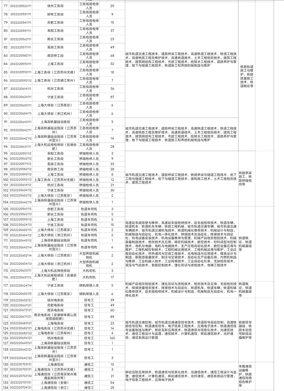 1.2022年毕业,列入国家招生计划、具备派遣资格的应届全日制普通高等职业院校高职(大专)毕业生。2021届离校未就业毕业生以应届毕业生身份参加应聘。 2.遵纪守法,品行端正,热爱铁路事业;素质能力适应招聘岗位工作要求,能够适应铁路沿线偏远地区、野外作业及长期夜班工作。 3.具有良好的心理泰质,无色言色弱,身体健康,符合国家公务员录用健康体检标准和招聘岗位职业健康规范标准,体重指数符合国家学生体质健康标准。 4.符合招聘岗位要求的学历、专业等条件,所学专业为铁路专业方向,所学课程包含铁路专业课程,未与任何单位签订就业协议。 5.工作单位所在地生源优先。 6.年龄28周岁及以下(1993年1月1日及以后出生),国家另有规定的除外。 招聘流程按以下环节进行:网上报名、审核筛选、考试考核、公示录用等。中国铁路上海局集团有限公司将根据招聘岗位需求分期分批审核筛选毕业生参加考试考核,具体时间、地点及方式另行通知。未进入考试考核环节的毕业生恕不通知。 提前在教育部学信网下载《教育部学籍在线验证报告》(文件保存为PDF格式,不大于300KB.报名时须上传),于2021年8月23日-2021年9月22日登录“中国铁路人才招聘网(rczo.china-railwav.com.cn)”或“上铁资讯网(www.dwxcb.railshi.cn)一铁路链接一应届大学生招聘”栏目,按照“用户注册→填写简历→选择公告→选择岗位(代码)→报名成功”流程报名应聘,报名成功后请下载并打印《应届大学生信息登记表》(请务必使用QQ浏览器兼容模式注册报名和下载表格,并牢记登录名和密码)。 报名须按照专业对口原则,如报名岗位与所学专业不对口,即为审核不合格,不得进入下一环节。所有信息须由毕业生本人如实填报,如发现网上填报信息与实际信息不一致的,取消应聘资格。每人限报一个岗位。 1.拟录用人员在中国铁路人才招聘网或上铁资讯网进行公示。 2.中国铁路上海局集团有限公司不向应聘者收取任何费用,不指定辅导用书,不举办也不委托任何机构举办任何形式的辅导培训班,请提高警惕,谨防社会机构冒名诈骗。 3.应聘毕业生必须保证所提供的联系方式畅通、有效,因通信不畅造成的后果招聘单位不承担责任。 4.请应聘毕业生提前准备好以下资料备用: (1)《应届大学生信息登记表》(网上报名时打印); (2)《教育部学籍在线验证报告》(教育部学信网下载打印); (3)《就业推荐表》原件(须学校盖章)和复印件; (4)《成绩单》原件(须学校盖章)和复印件; (5)身份证原件和复印件; (6)外语、计算机能力证书原件和复印件;奖学金证书、获奖证书、荣誉称号证书、职业资格证书等证明本人资历能力的材料原件和复印件; (7)《体检报告》原件(三个月之内,二级甲等及以上医院常规项目体检,血压、辨色力、视力、听力、心电图、胸片、血常规、尿常规、肝功能、肾功能为必检项目); (8)《普通高等院校毕业生就业协议书》原件(须学校盖章)。 5.中国铁路上海局集团有限公司人事部保留对本公告及附件最终解释权。 6.咨询电话:021-51222191,51225731; 联系人:顾老师; 咨询时间:工作日13:30-17:00。 中国铁路上海局集团有限公司人事部