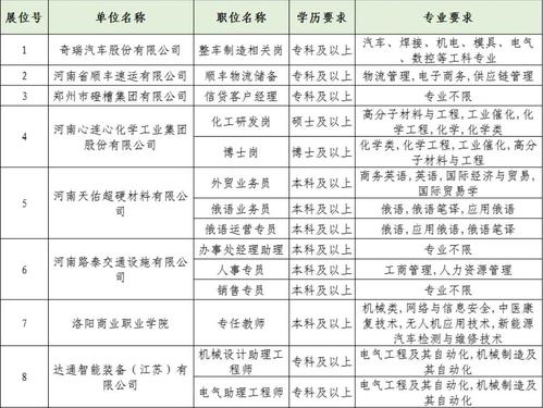 4月23日(本周三),河南省高校毕业生就业市场将举办“豫荐未来 青春启航”—— 2025届河南省高校毕业生“春季攻坚行动”双选会第十五场,河南心连心化学工业集团股份有限公司、奇瑞汽车股份有限公司、鲁南制药集团股份有限公司、广西田园生化股份有限公司、洛阳商业职业学院以及淳华科技(昆山)有限公司、三一重机有限公司、昆山丘钛微电子科技股份有限公司等昆山市名企组团莅临现场招贤纳才,诚邀2025届毕业生和往届未就业毕业生参加! 时间地点 时间:2025年4月23日9:00-12:00 地点:河南省高校毕业生就业市场(郑州市郑东新区相济路81号河南省大学生就业创业综合服务基地) 联系电话:0371-61179358 参会单位及岗位情况 用人单位持续报名中,部分参会单位及岗位信息如下: