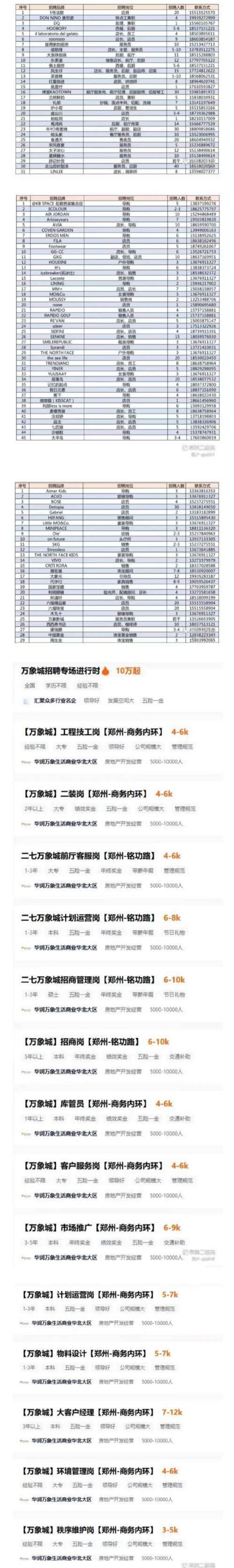 郑东新区万象城开业!大量招聘工作人员!