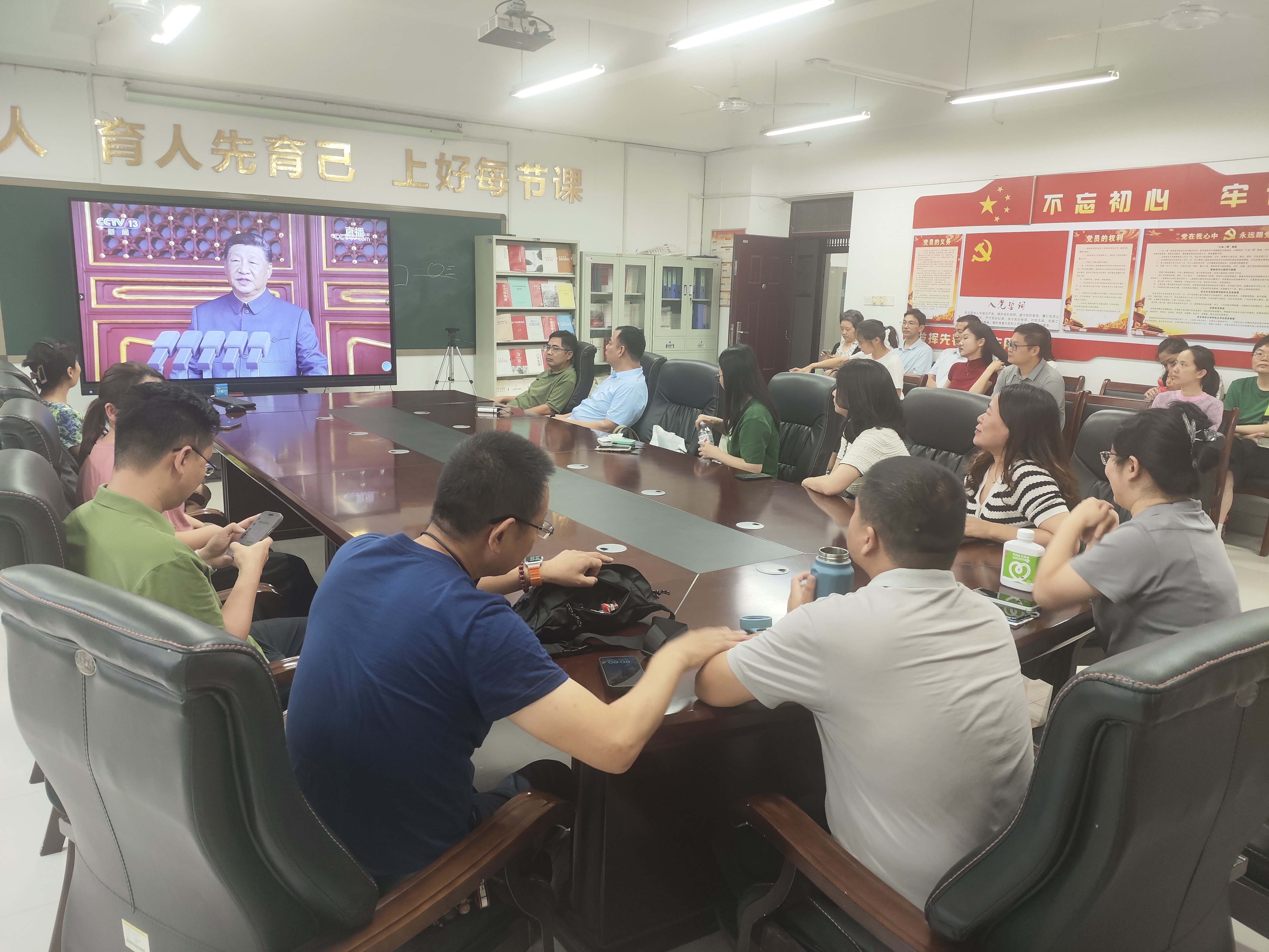 9月3日,运输管理学院组织全体教职工集体观看纪念中国人民抗日战争暨世界反法西斯战争胜利80周年阅兵式直播。