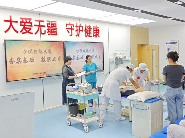为进一步强化护理实践教学,提高教育教学水平和人才培养质量,促进护理专业建设,6月7日,护理学院举办2024年护理技能大赛。本次大赛邀请河南中医药大学护理学院副院长秦元梅担任大赛主评委,护理学院负责人、相关教师及护理专业学生现场观摩比赛。