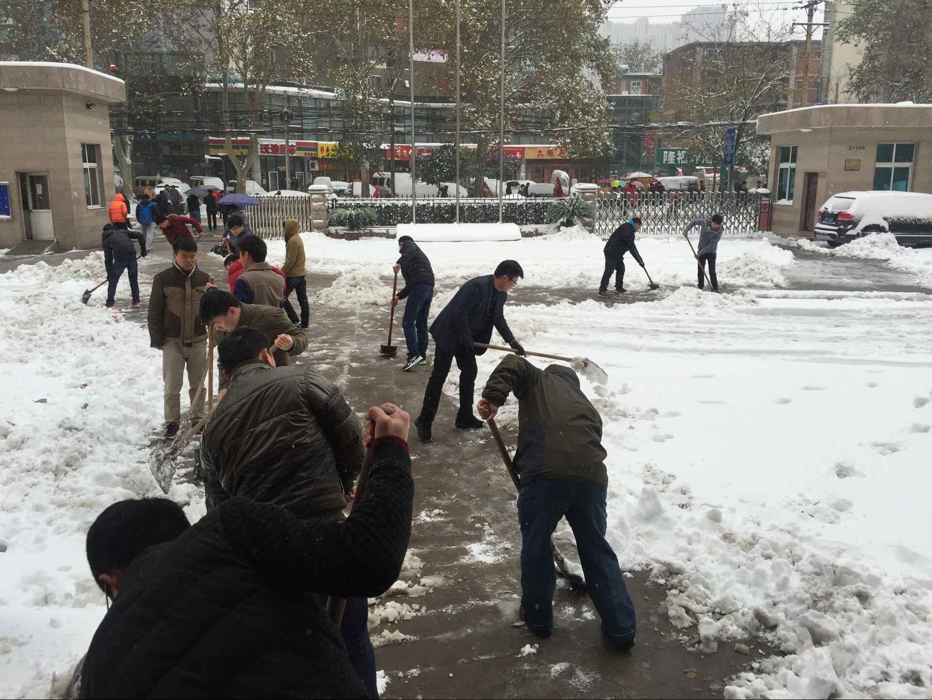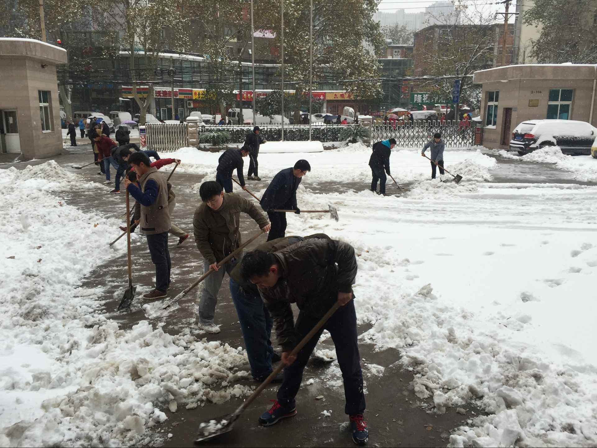 11月24日,2015年的第一场雪到来了。厚厚的白雪覆盖了校园内的道路,严重影响了大家的出行。伴着寒风与低温,机电工程系学生开始了一场扫雪志愿活动。同学们纷纷拿起铁锹,到幸福校区开始了清扫活动。依然飘舞的雪花使除雪工作更加艰难。同学们的脸蛋被冻得通红,头上、身上也渐渐地覆盖了一层雪,俨然就是一个个活雪人,但这丝毫挡不住大家的热情。在学生处郭处长、辅导员楚老师的带领下,大家组成了一支扫雪队伍。机电工程系充分发扬了吃苦耐劳、坚持不懈的精神,老师与学生团结协作,快速地将办公楼、一号楼以及图书馆门前的雪清扫干净。干劲十足的同学扫雪的身影感染路过的同学,纷纷投来赞许的目光。清扫活动继续ing~~大家快来加入吧。 >这场扫雪活动见证了老师及同学们团结的力量,这种力量让这个冬天更加灿烂和温暖。
