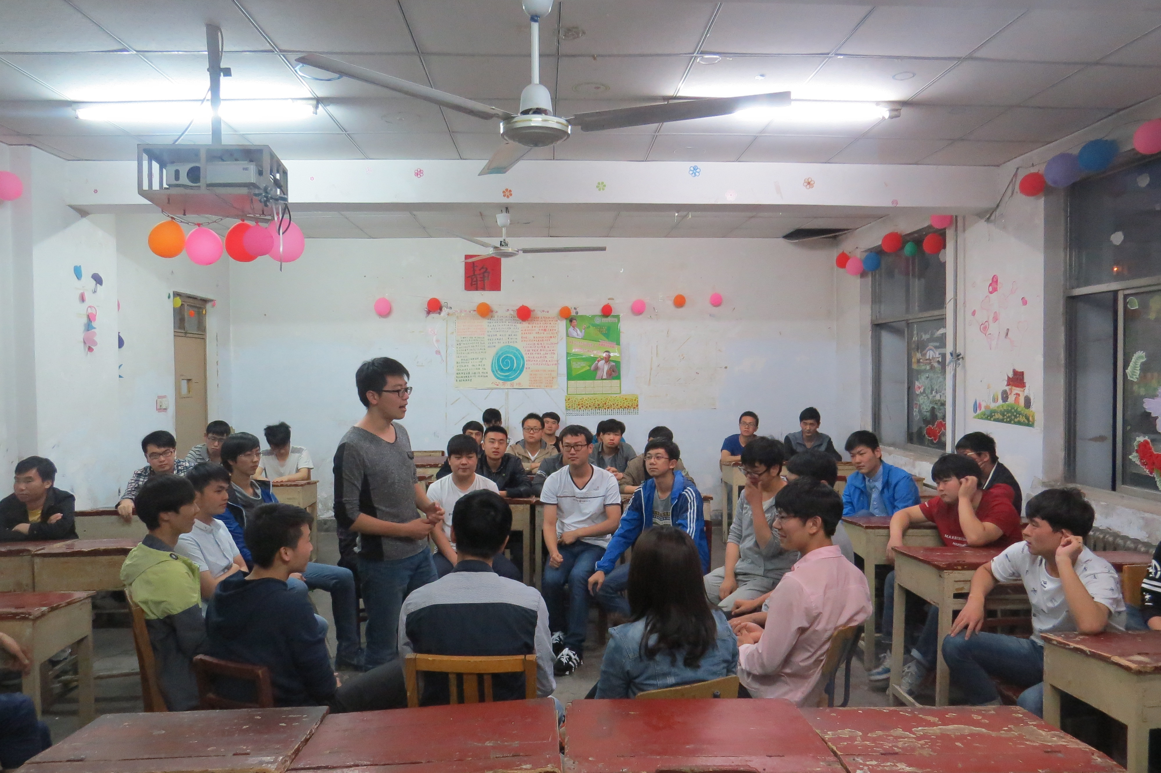 5月15日晚上,机电工程系大一大二全体同学在铁英校区三号教学楼二楼教室展开了以“纪念长征胜利80周年”的主题团课。