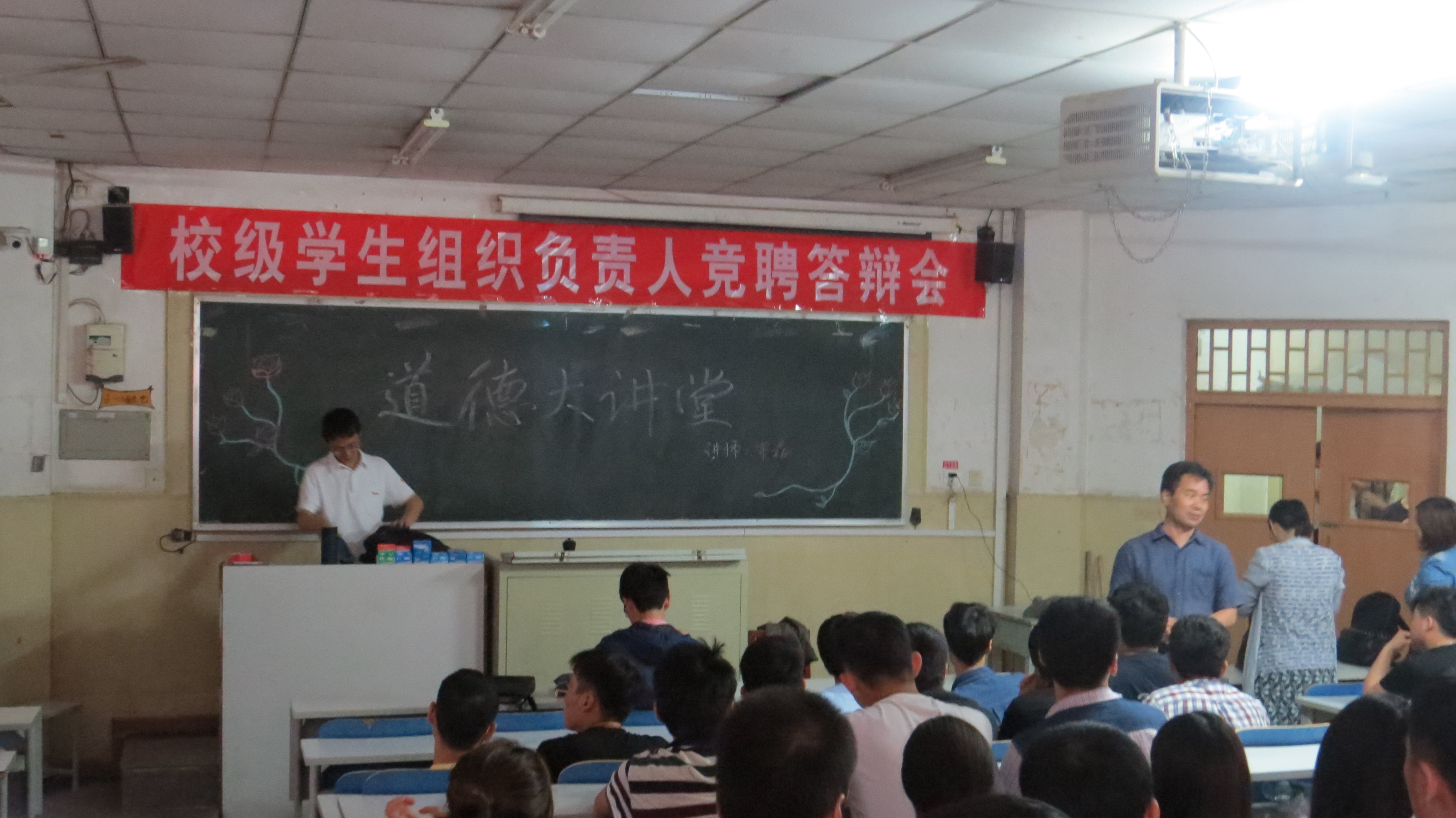 四点三十分,在同学们等待中演讲开始了,常老师首先由自己的亲身经历引出了职业道德的重要性,然后又以观看幻灯片,讨论等形式阐述了职业道德的要求,他说:“就是从业人员在道德意识和道德行为方面的自我锻炼及自我改造中所形成的职业道德品质以及达到的职业道德境界。”最后,同学踊跃发言,诉说了自己对职业道德的自我感悟。