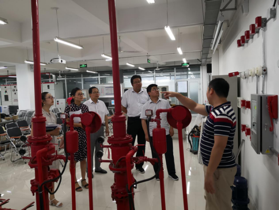 城轨环控综合实训室以城市轨道交通车站风水电检修岗、自动化检修岗相关设备为参考原型,设备包括车站通风与空调工程实训系统、给排水实训系统、供配电及照明控制实训系统、消防自动报警及联动实训系统、中控室及气体灭火实训系统等。郭主任和武主任具有多年的风水电检修岗、自动化检修岗一线工作经验,他们非常细致地查验了城轨环控综合实训室的设备施工质量及调式运行情况。两位专家结合郑州地铁机电设备维保经验,同时考虑实践教学的差异性及学生实训过程中的安全问题,提出了许多合理化建议,并有针对性地提出整改方案及解决措施。