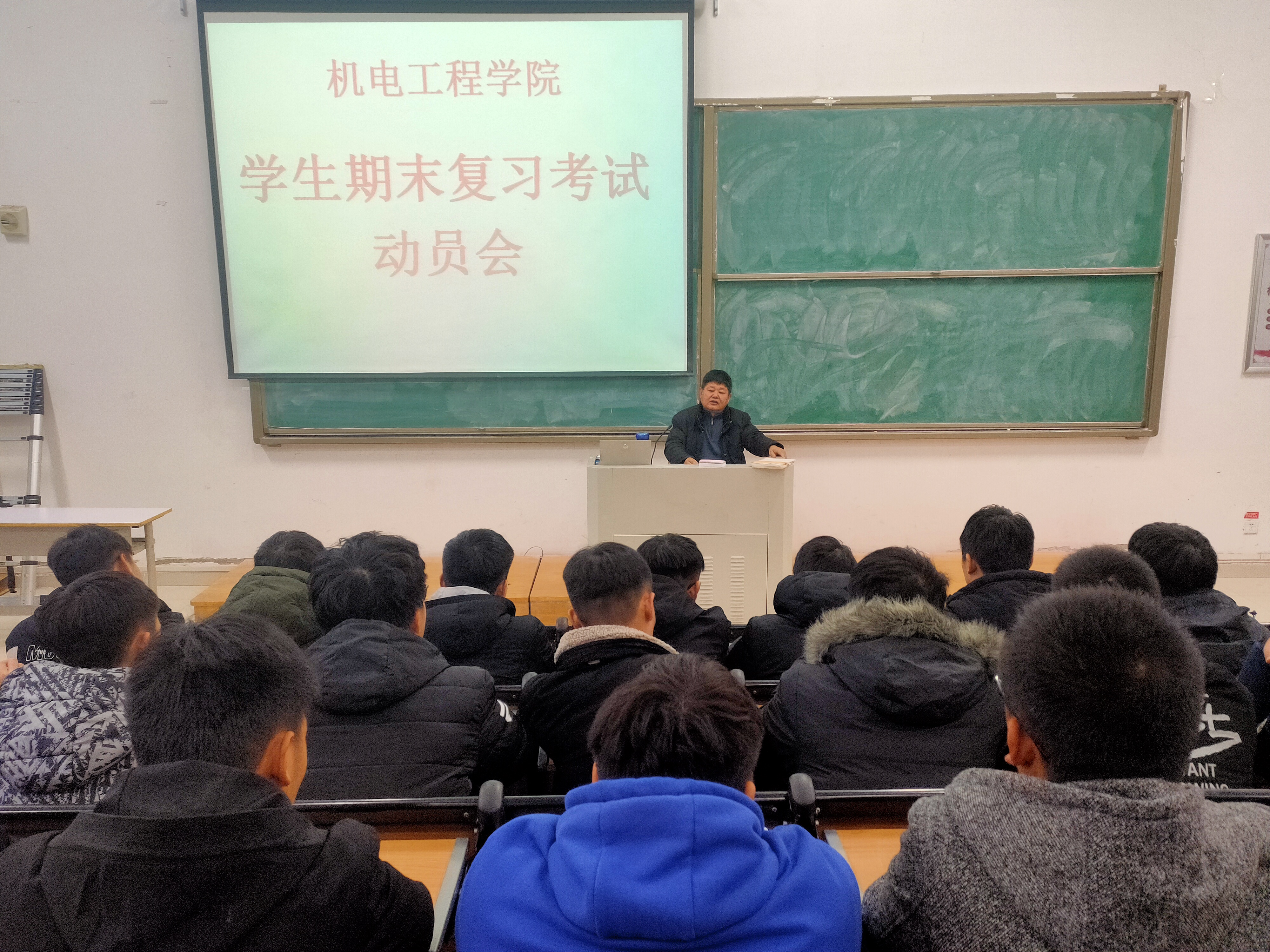 为了提高我院学子的学习成绩,加强我院学风建设,确保学院教学质量,机电工程学院于12月10日下午13点30分在7125教室开展学生期末复习动员暨考风考纪大会,大会由宋书记主持,19级全体学生参加。