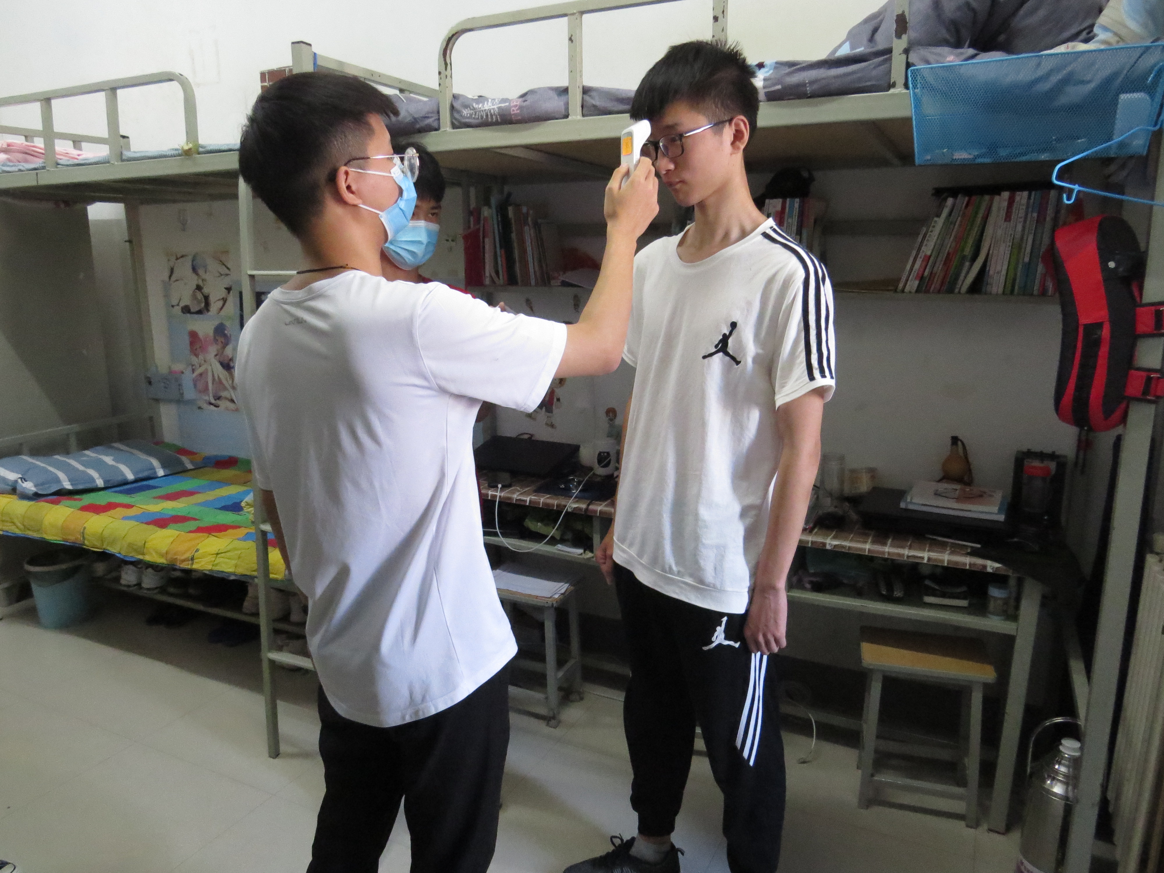 首先宿管部成员在机电工程学院宿管部进行开会,部署工作内容:第一,工作人员要以身作则做好防护措施,进行消毒,戴好口罩。第二,一日三次测量体温,进宿舍要先给宿舍成员测好体温,做到防患于未然。第三就是对宿舍的常规检查,疫情防控期间也要保持宿舍卫生,物品也要摆放整齐等日常工作,同时对各个宿舍进行消毒处理。宿管人员把全体同学健康情况和宿舍卫生检查结果记录在本。宿管人员尽职尽责和宿舍同学的全力配合共同造就了安全整洁的宿舍环境。