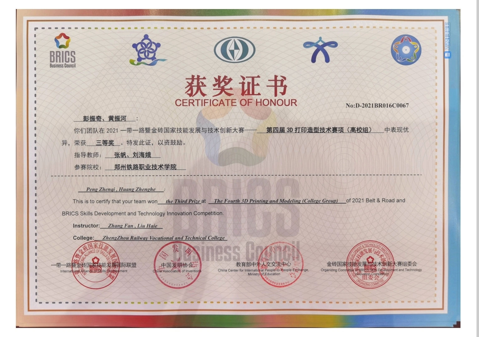 629日,该赛事是由金砖国家工商理事会中方理事会主办、教育部中外人文交流中心联合主办、金砖国家工商理事会(中方)技能发展工作组承办、黄河水利职业技术学院联合承办,第四届3D打印造型技术赛项落幕。本次赛项共5个国家51支队伍参赛。