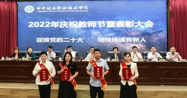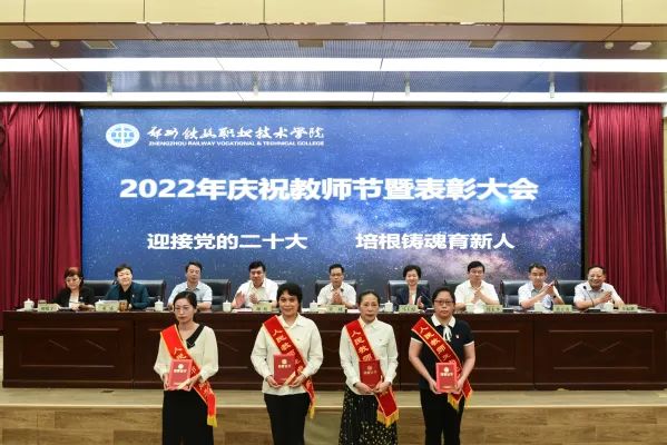 大会在庄严的国歌声中拉开帷幕。党委副书记、纪委书记谢乾宣读全国职业院校技能大赛教学能力比赛、首届全国教材建设奖奖励表彰决定;党委副书记、工会主席徐宏平宣读河南省职业教育教学专家、河南省高等教育教学成果奖、河南省职业教育优秀教学成果奖表彰决定;副校长倪居宣读河南省职业院校“双师型”名师工作室、河南省高等职业教育青年教师课堂教学创新大赛、河南省职业教育和继续教育课程思政示范项目表彰决定;副校长焦宏涛宣读河南省教科文卫体系统先进个人、河南省教育外事工作优秀个人、河南省高校科研管理工作先进工作者、全省教育系统新媒体工作优秀个人表彰决定;副校长董媛宣读河南省教育厅学术技术带头人、河南省教育厅优秀教育管理人才、河南省文明教师、河南省教学标兵表彰决定;副校长李福胜宣读全省教育信息工作考核先进个人、全省高校思想政治工作奖、全省教学技能竞赛奖、河南省高校辅导员素质能力大赛表彰决定;副校长胡殿宇宣读学校先进科室、优秀教师、优秀教育工作者、最美教师、师德先进个人,优秀辅导员、班主任表彰决定。
