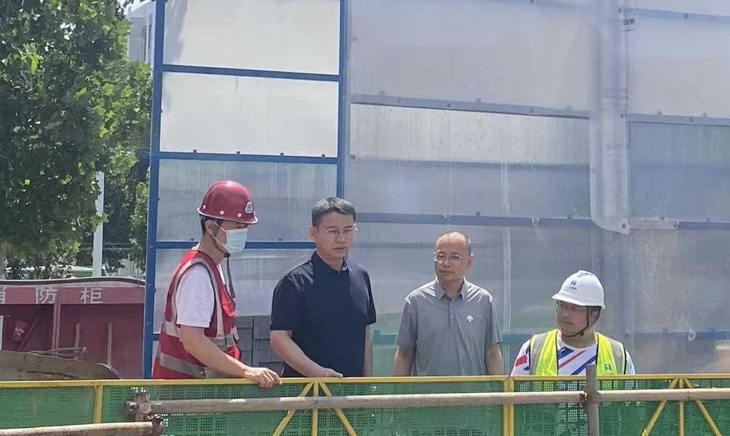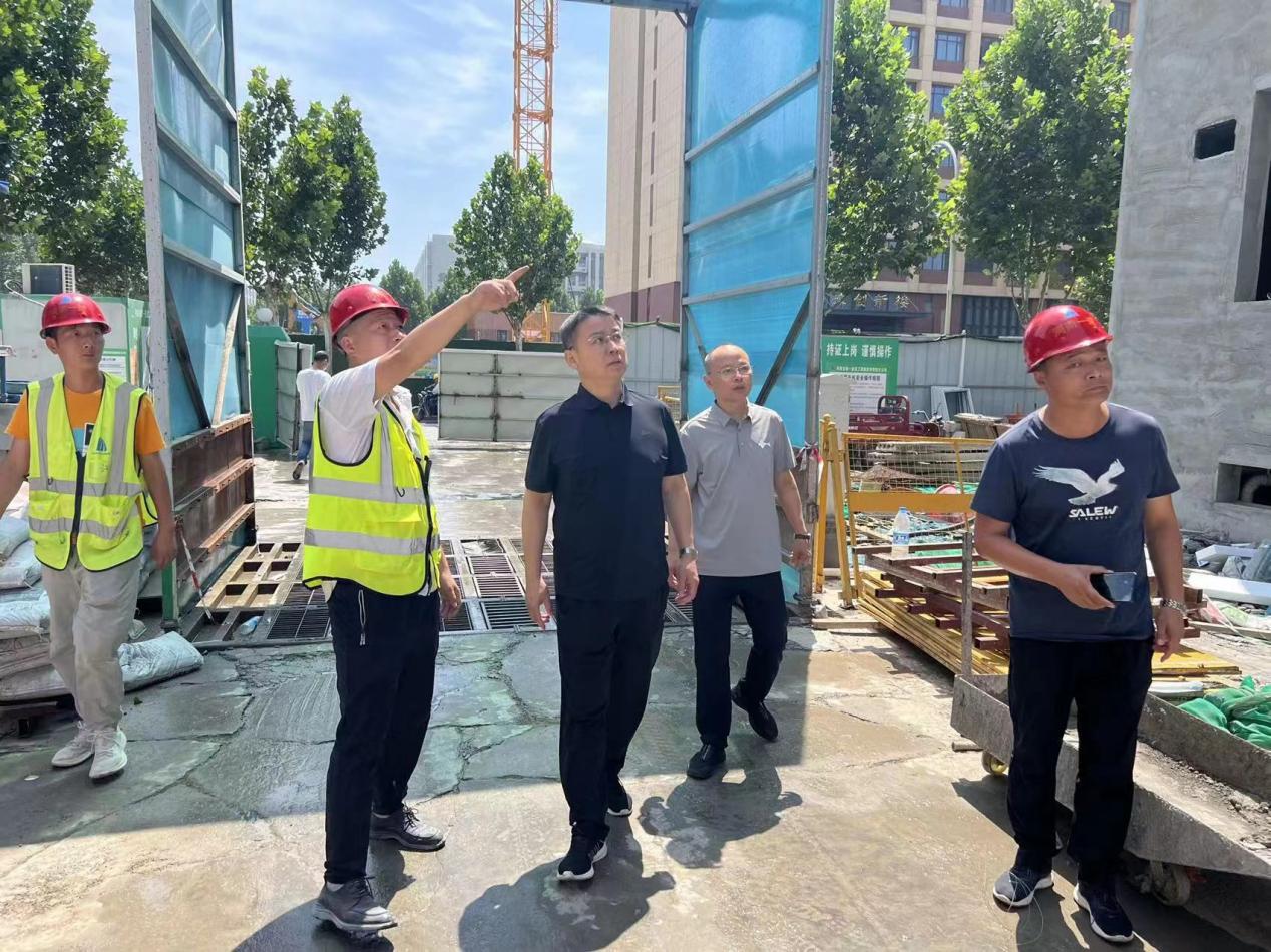 在学生宿舍楼施工现场,焦校长强调在高温条件下施工,又逢汛期,要做好工程养护和防汛,严格按规范施工,确保工程质量和安全。同时,要求施工单位在做好疫情防控工作,并做好施工人员的防暑降温、安全防护工作,确保工期。