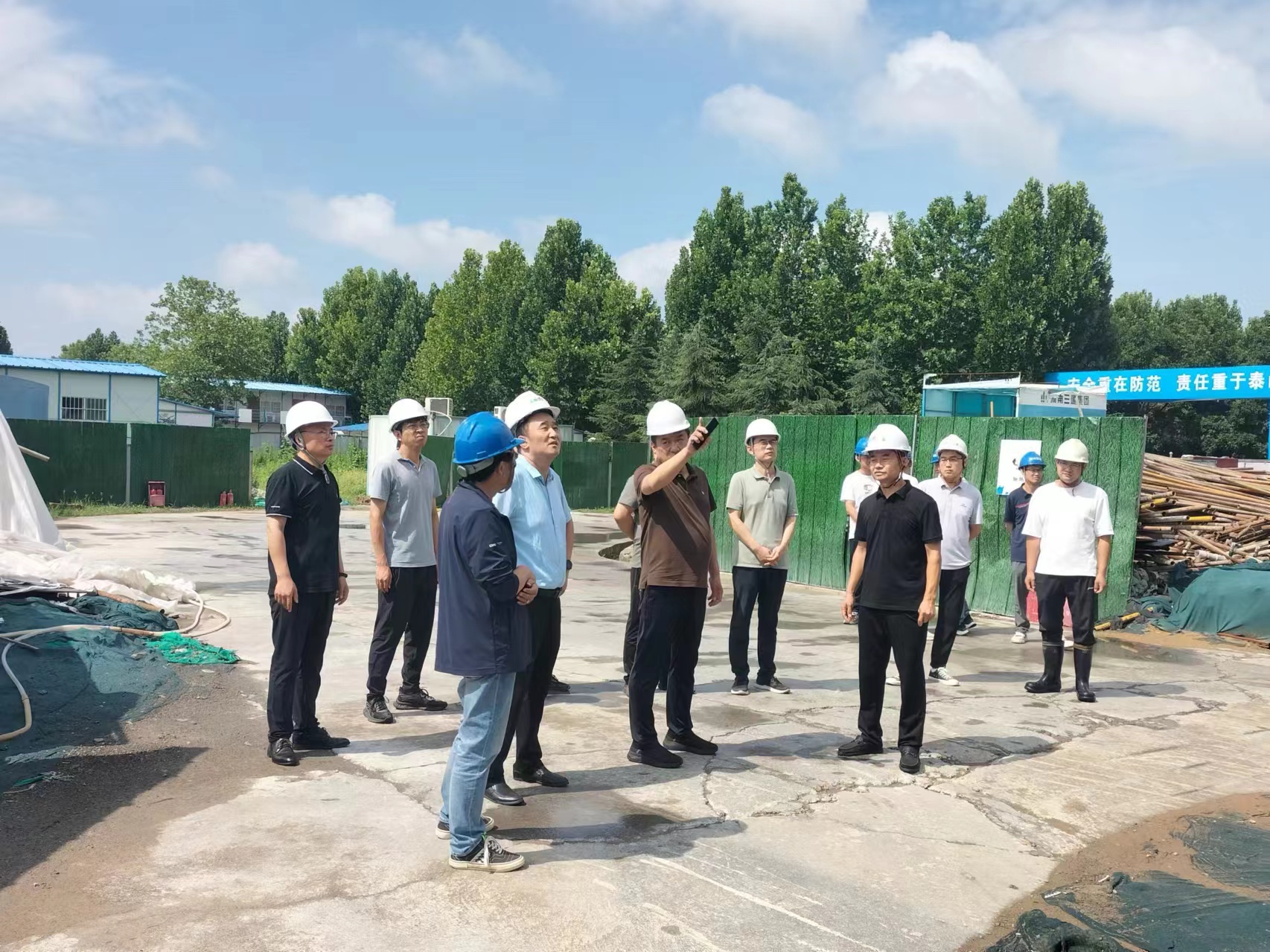 7月2日,副校长李学武在新校区视察基建工程项目建设情况,基建处相关工作人员陪同。