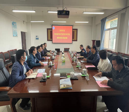 近日,郑州澍青医学高等专科学校教务处处长王丙申一行5人来校交流访问,教务处处长梁明亮及教务处、创新创业学院相关人员参加座谈交流。