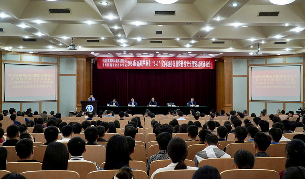 4月11日上午,中国铁路郑州局集团有限公司与mg娱乐电子游戏官网2024届高职毕业生“2+1”定向培养岗前资格性安全理论培训开班动员会在我校幸福路校区顺利举行。中国铁路郑州局集团有限公司副总经理、工会主席陆彦彬,mg娱乐电子游戏官网校长马玉霞,中国铁路郑州局集团有限公司职培部部长代新年,我校副校长倪居、李福胜出席会议,中国铁路郑州局机关处室和各站段负责人、学校相关职能部门和学院负责人、全体班主任和学员代表参加会议,会议由倪居主持。
