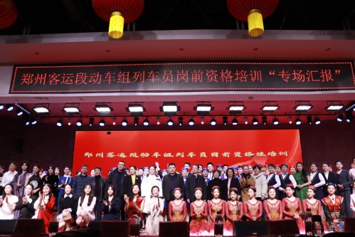 12月24日下午,由继续教育学院主办、艺术学院承办的郑州客运段动车组列车员岗前资格培训成果专场汇报在我校大学生活动中心举行,郑州铁路局职教处副处长杨明卿,郑州客运段副段长刘芳,我校副校长倪居,艺术学院和继续教育学院负责人、郑州客运段各高铁车队负责人应邀出席,艺术学院交通乘务教研室全体老师及动车组列车员岗前资格培训的300余名学员共同参加了本次汇报。