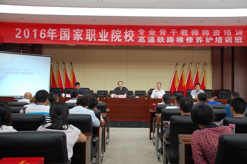 7月5日,由我系承办的2016年国家职业院校专业骨干教师师资培训——“高速铁路维修养护”项目培训班,在郑州铁路局郑州桥工段职工培训基地举行了开班仪式。我校副校长董黎生、郑州桥工段党委书记彭伟平、建筑工程系党总支书记张勇、副主任王为林以及培训班主讲教师等出席了开班仪式。