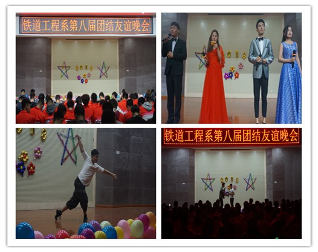 为了丰富同学们的课余生活,增进同学之间友谊,4月22日晚,铁道工程系于大学生活动中心举办第八届团结友谊晚会。此次活动由铁道工程系主办,铁道工程系治保部承办,大一全体学生参加。