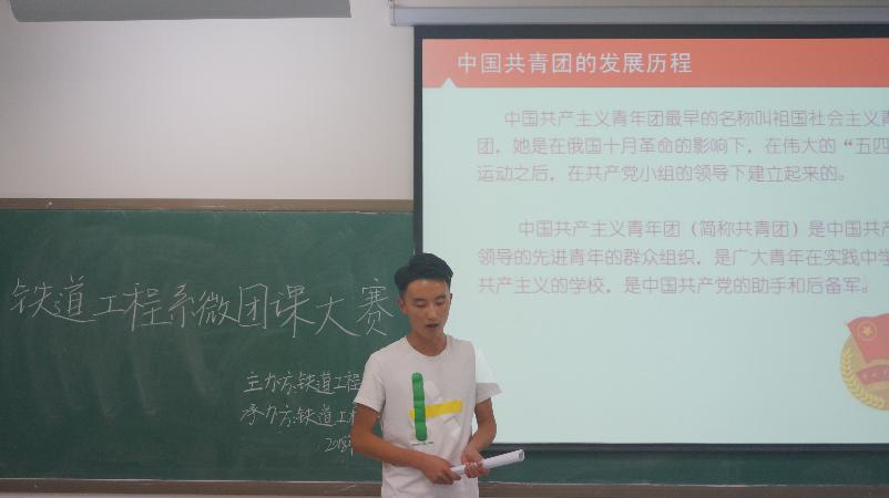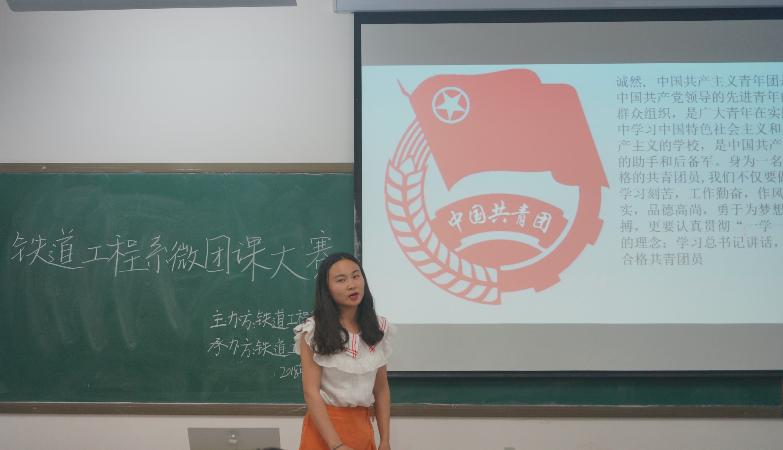 为牢固铁道工程系青年团员对党的科学理论的信仰,坚定走中国特色社会主义道路,实现“中国梦”的信念。6月3日晚铁道工程系在8316举办“微团课”大赛,此次大赛由铁道工程系团总支主办,铁道工程系学习部承办,部分团学组织人员参加比赛。