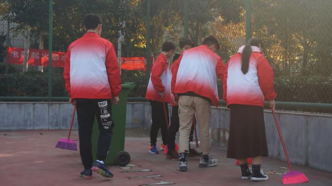 此次活动以义务劳动的形式展开,各班劳动委员和团支书带领相关入团积极分子在各自负责的劳动领域认真清扫场地上的枯枝落叶及雨后积水。由于刚下过一场雨,气温较低,但这并未让同学们放慢劳动的步伐,经过半个多小时的清扫,场地基本清扫完毕。各班劳动委员留下部分同学进行劳动收尾工作,并将劳动工具进行分类归放,其余同学有序离开场地,至此义务劳动圆满结束。