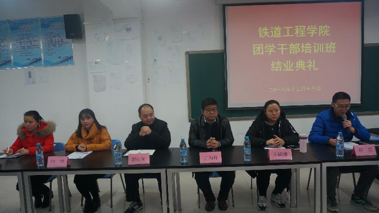 为提高团学组织干部的个人能力,铁道工程学院于12月13日下午在6c417举行“团学组织干部结业典礼”,出席本次活动的有铁道工程学院党总支书记郭运宏、院长王为林、副书记王晓靖、学工办主任赵亮、辅导员闫然、唐华瑞老师,17级全体团学组织干部和18级各班班委积极参加。