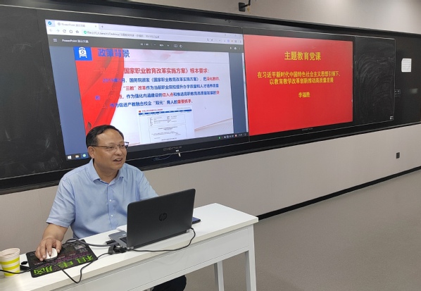 为全面学习领会党的二十大精神,深入开展学习贯彻习近平新时代中国特色社会主义思想主题教育,5月23日下午,副校长李福胜教授以《在习近平新时代中国特色社会主义思想引领下,以教育教学改革创新推动高质量发展》为主题,在9号楼613智慧教室为铁道工程学院、基础教学部和天使书院等部门全体师生党员讲授了一堂立意深远的主题教育党课。
